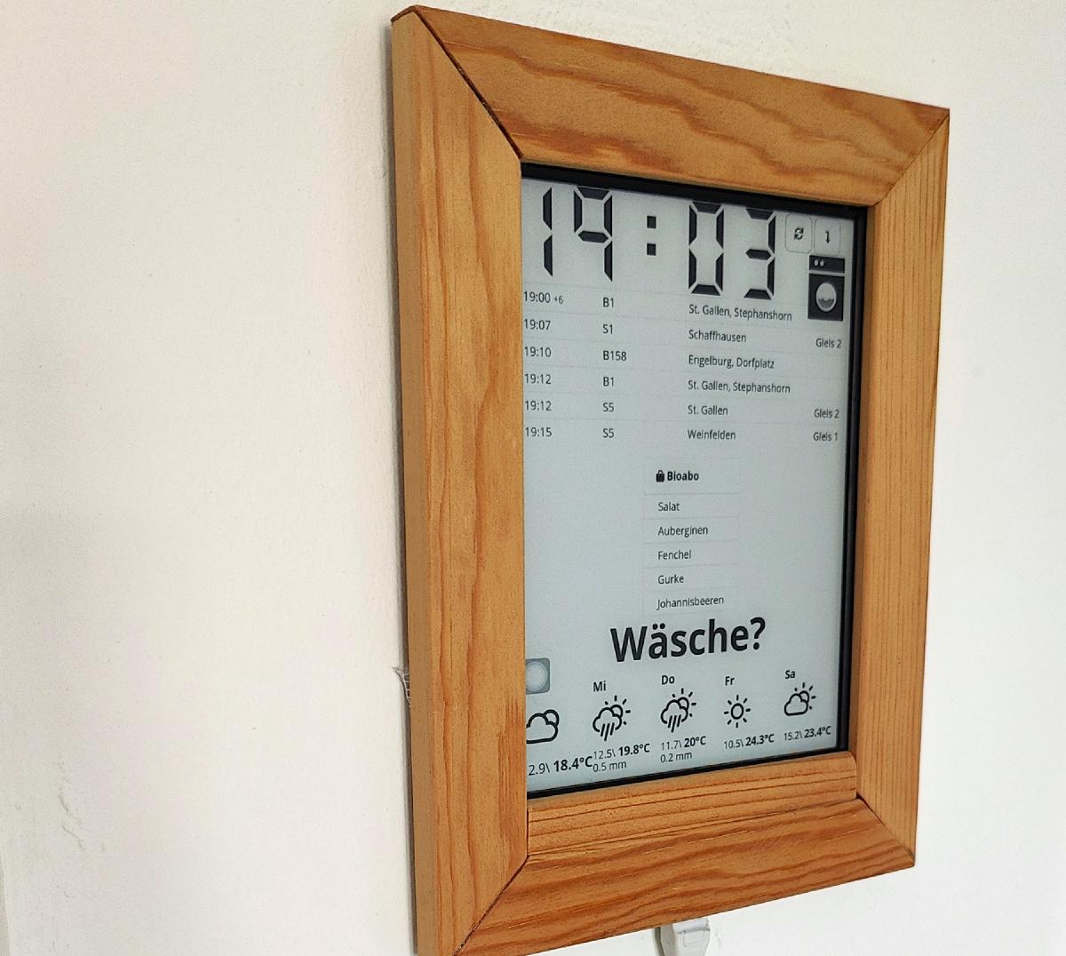 Um diese Informationsbeschaffung zu vereinfachen, baute ich aus einem günstigen E-Book Reader, dem Tolino Shine 2 HD, ein Dashboard, das seit 2019 an der Wand in unserem Wohnzimmer in ständigem Einsatz ist.